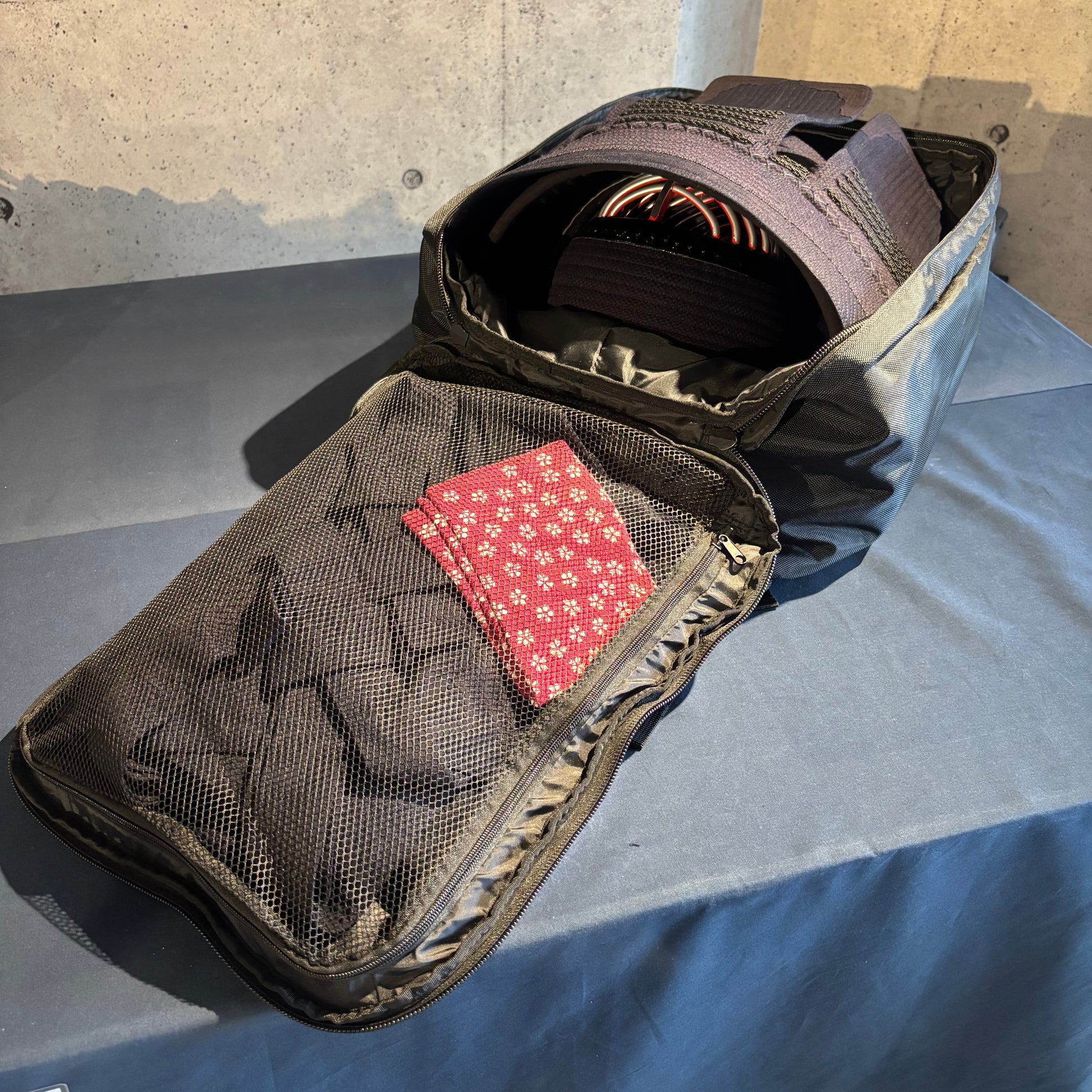 シンプルなデザインながら、軽量で使い勝手の良いバックパックタイプの防具袋です。