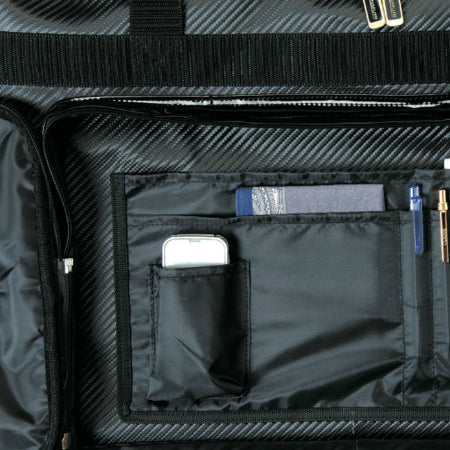 また側面ポケットの中にも携帯電話、ペンなどを個々に収納できるスペースを設けました。